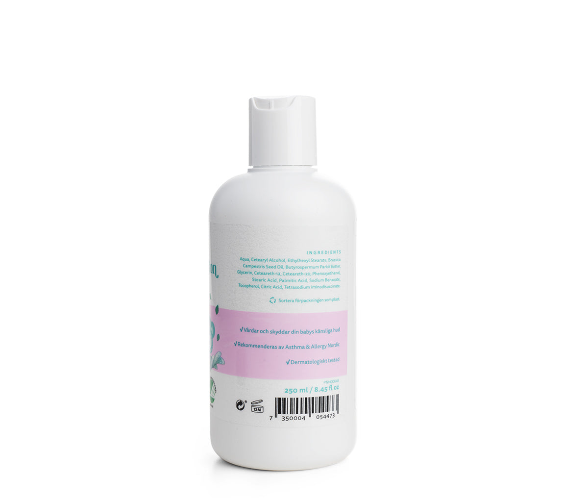 Vår baby body lotion är utvecklad för att skonsamt vårda och skydda din babys känsliga hud. Oparfymerad och med milda ingredienser bevarar den hudens naturliga fuktighet och är perfekt för daglig användning. Applicera en liten mängd lotion på ren och torr hud. Applicera vid behov igen. Undvik kontakt med ögonen.