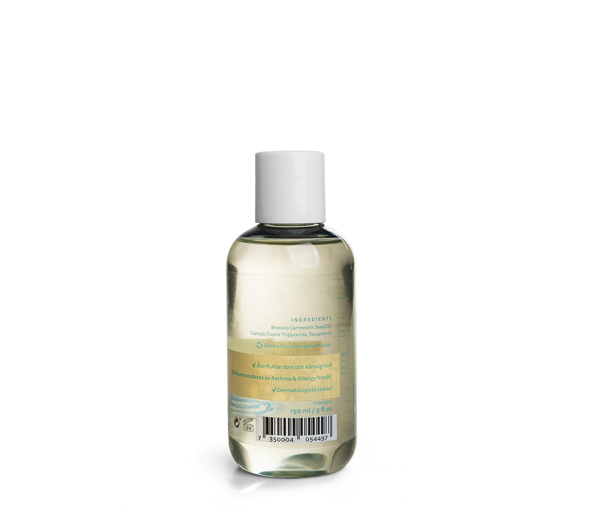 Vår babyolja är framtagen för att vara återfuktande och passar alla med torr och känslig hud. Perfekt i badet eller som en skonsam massageolja. Motverkar mild skorv i barnets hårbotten. Oljan är oparfymerad.