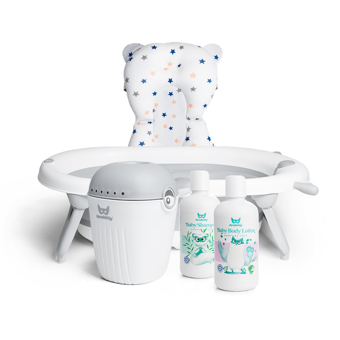 Pack Bain & Hygiène est un kit complet pour une routine de bain et de soin sûre, pratique et agréable, de la naissance à la petite enfance.