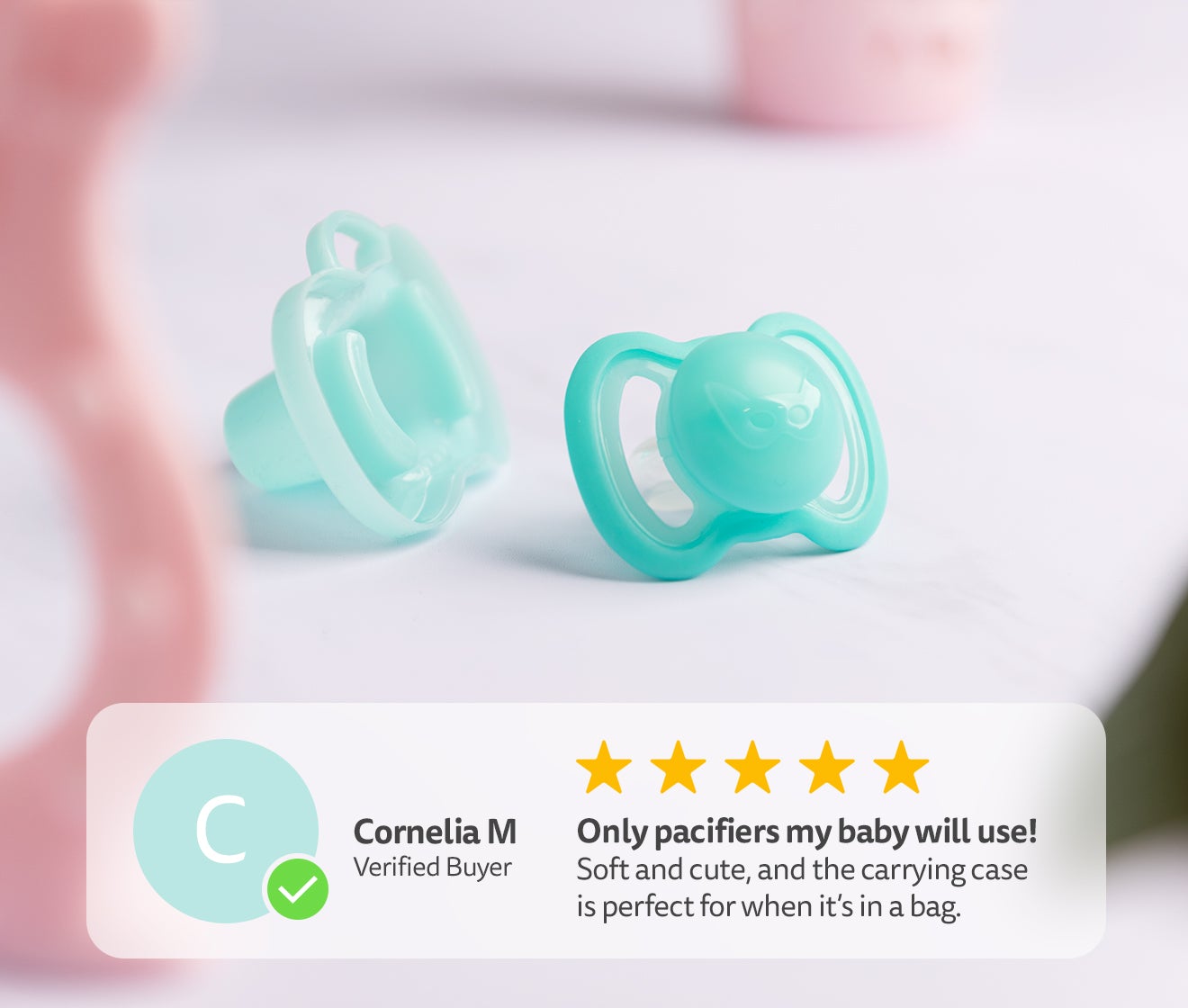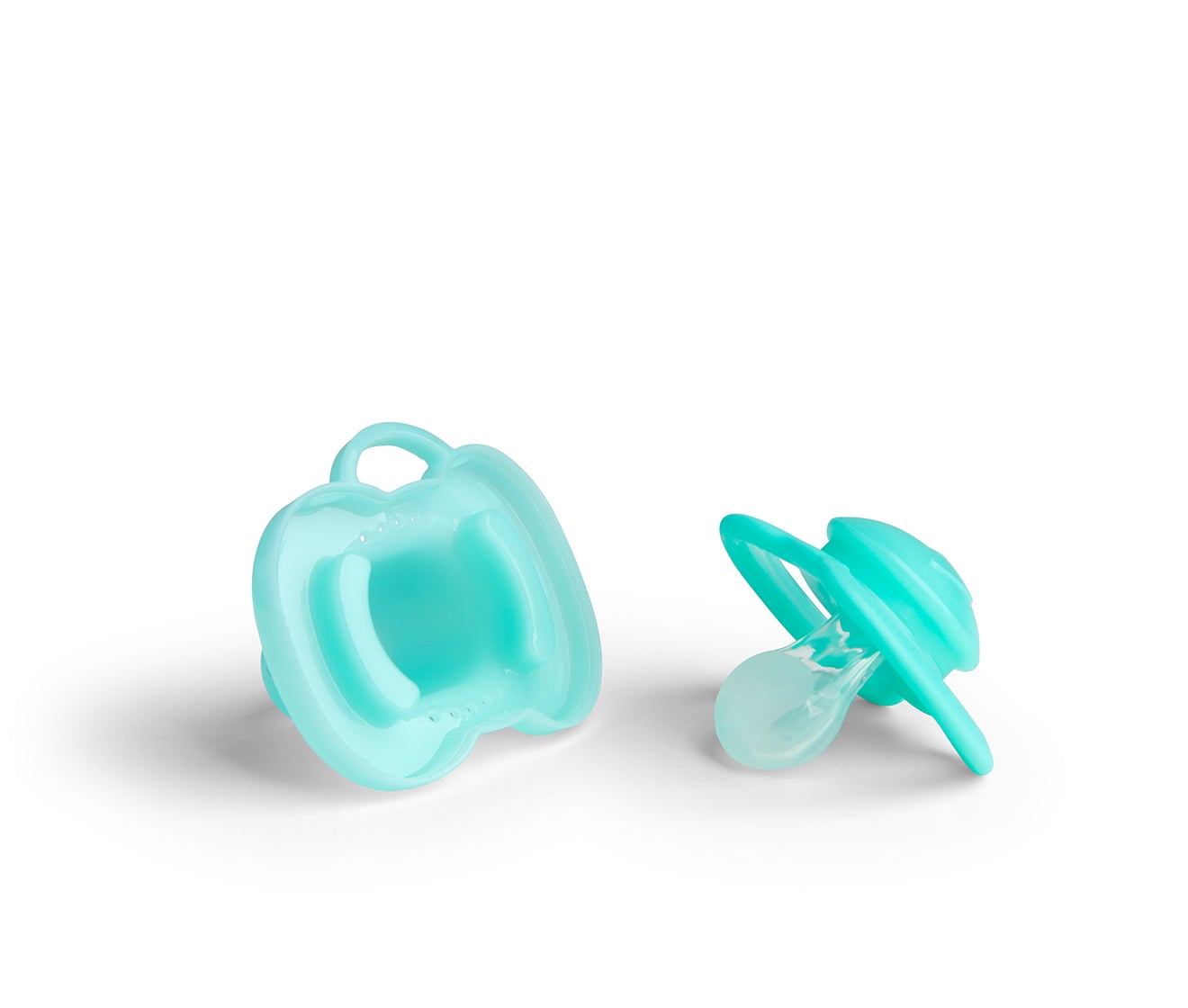 Nappen har en tunn och mjuk sugdel i silikon som är utformad för att passa perfekt i bebisens mun.