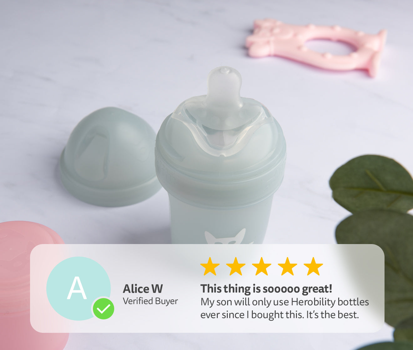 Herobility's prisbelönta nappflaska med dubbelt anti-kolik system ger en enkel och säker matning ofta på första försöket. Bred öppning, lätt att rengöra och säker för mikrovågsugn. Utvecklad i Sverige och utnämnd till Sveriges bästa nappflaska.