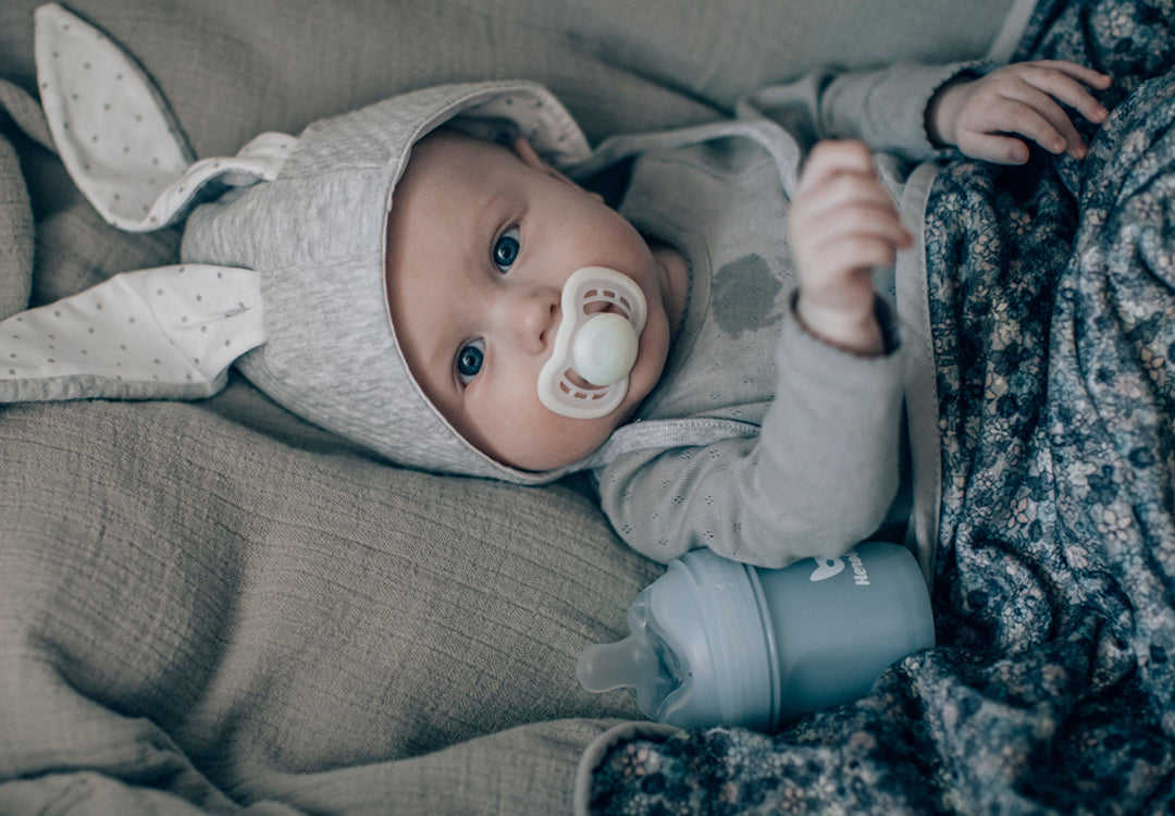 För oss står vår ECO-märkning för en minskad miljöpåverkan jämfört med produkter gjorda helt i fossil plast som framställs från råolja. Vi strävar efter att i stället använda material som påverkar ekosystemet så lite som möjligt, till den utsträckning det är säkert och användbart. Detta gör vi till exempel genom att minska användningen av fossil plast och istället ersätta det med säkra material som till exempel bioplast, glas, silikon och stål. Det finns givetvis för- och nackdelar med alla material, men för att uppfylla de hårt ställda säkerhetskrav som finns på babyprodukter så har vi valt just dessa.
