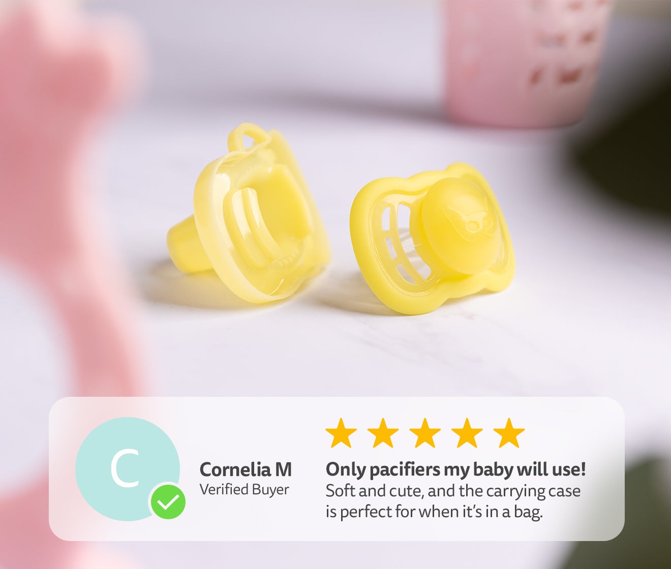 Nappen har en tunn och mjuk sugdel i silikon som är utformad för att passa perfekt i bebisens mun.