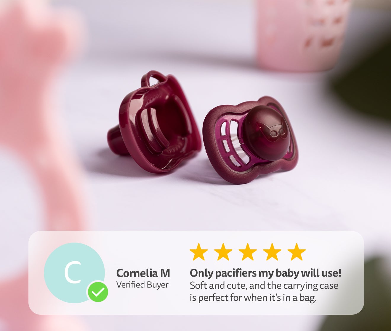 Herobilitys nappar är utvecklade med bebisen i fokus. Nappen tröstar, hjälper bebisen att känna trygghet och komma till ro, många bebisar somnar lättare med nappen i munnen.